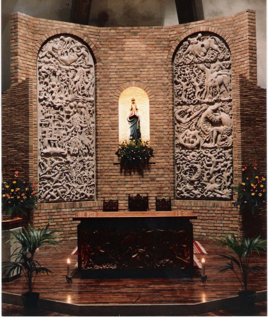 Nell’Abside altorilievi in Pietra di Aurisina
